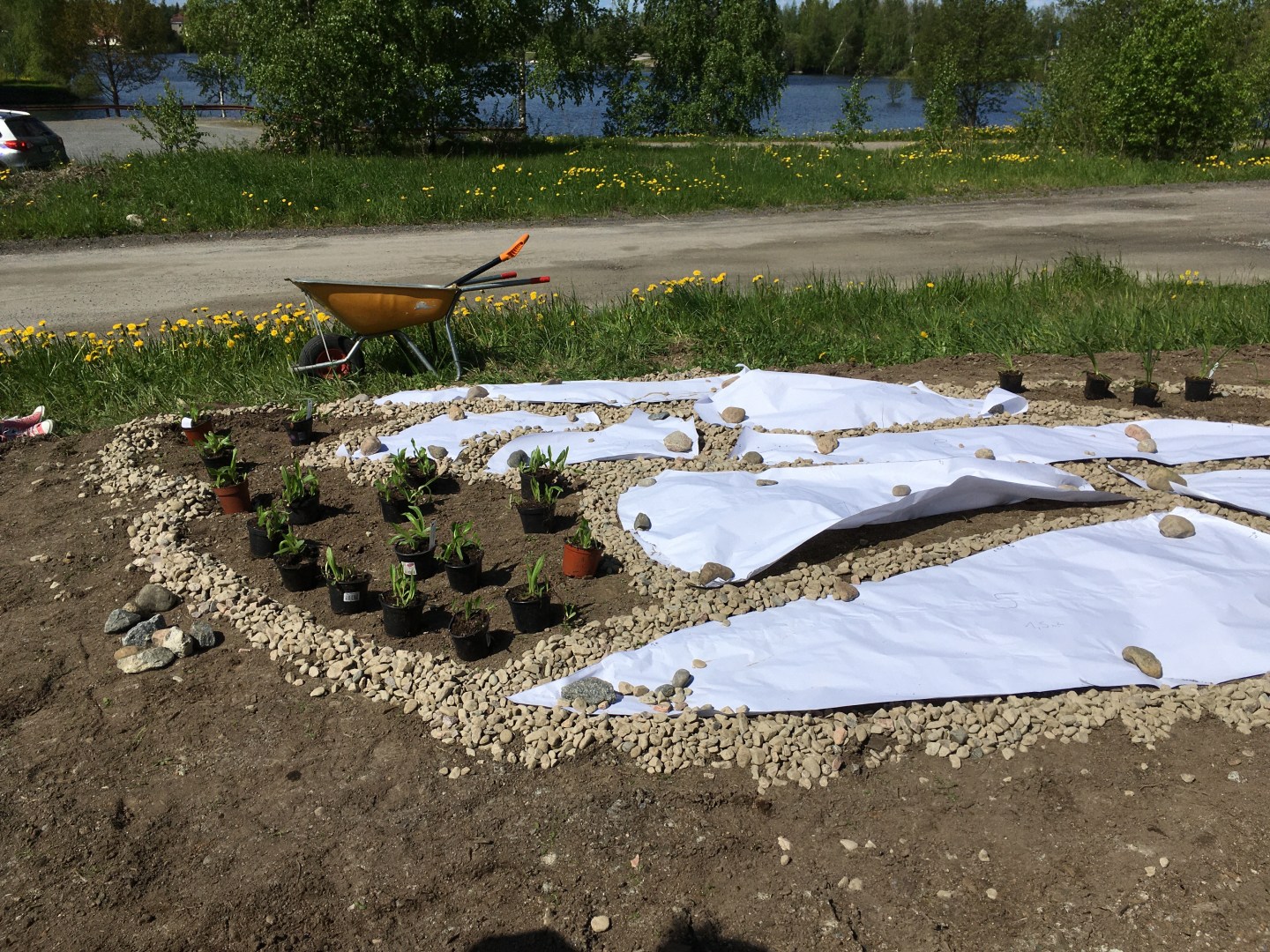 For this year’s contemporary art festival in Mänttä (Mäntän kuvataideviikot), an installation with flowers has been planted that is a clock, of sorts. The selected plants display a circadian rhythm with their blossoms opening and closing at particular moments of the day, and are telling the time. How do plants know time? Will we be able to read their time? The selection of plants features endemic Finnish species that are perennial. All plants are chosen to be attractive for pollinators and provide a harvest of pollen and nectar for a variety of insects like wild bees, bumblebees, beetles, butterflies and others.