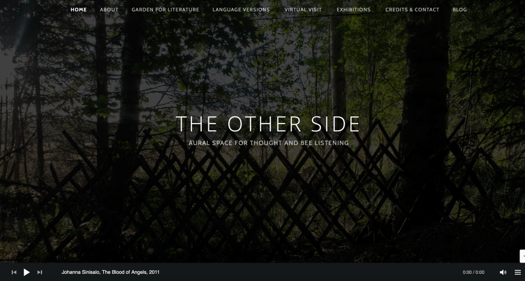 The Other Side aural space was published online in September 2020, introducing a selection of text excerpts written by philosophers, writers and poets from different times and countries. The common thread of these writings are bees, eternity and cycle of life and death.  The site is found here: www.theotherside.fi