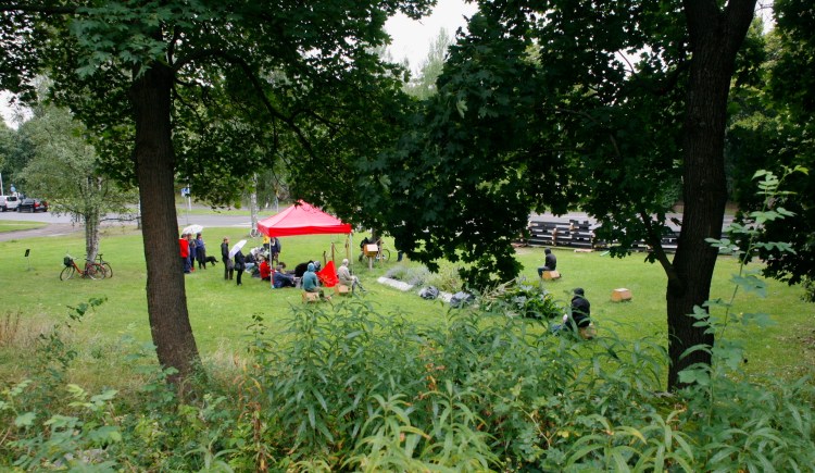 In cooperation with Melliferopolis and Aalto University, Till Bovermann installed piezo-based microphones into beehives of the temporary Hexa-Hive Villages at Otaniemi Aalto Campus, near Ossinlampi (2013) and Tarja Halosen puisto in the Helsinki city (2016).